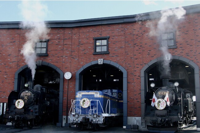 イベント会場では、企業、団体等による各種物販、SL機関庫内の見学、車両撮影会では、C11形123号機とC11形207号機を前後に並べて展示し、重連運転をイメージした姿で撮影いただけるほか、時間を指定して、2023年のお正月用のヘッドマークを掲出します。