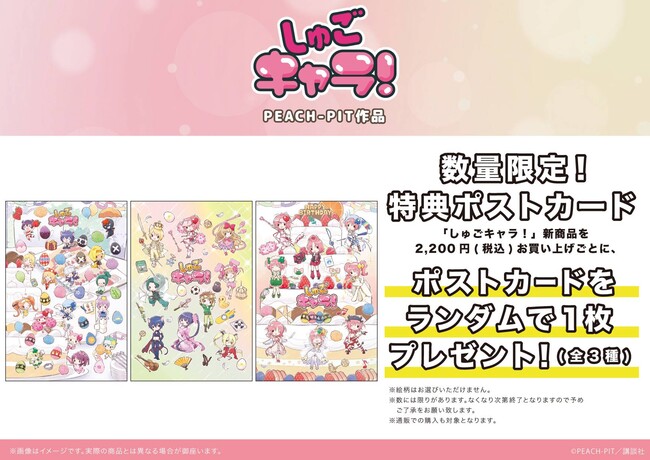 『しゅごキャラ!』新商品を2,200円(税込)お買い上げごとに、ポストカード全3種をランダムで1枚プレゼントしています。