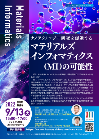 2022年9月13日(火)、「ナノテクノロジー研究を促進するマテリアルズインフォマティクス(MI)の可能性」と題してナノテクノロジーセミナーを開催します。ぜひご参加ください。