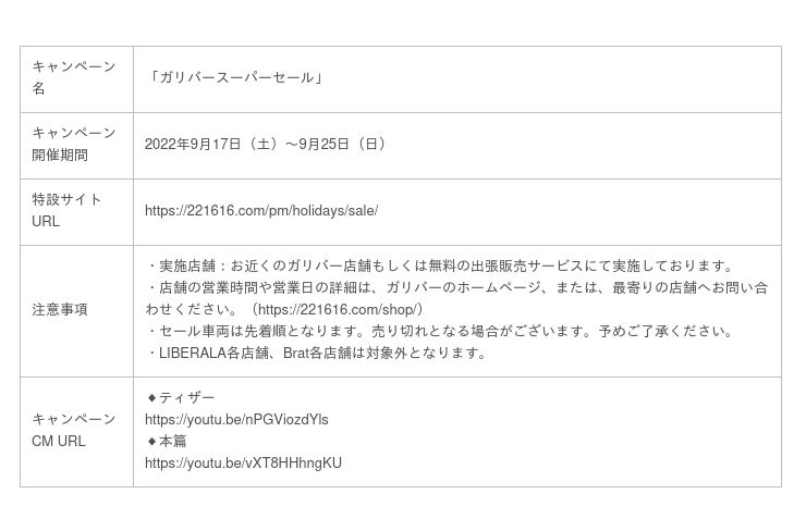 株式会社IDOM(本社:東京都千代田区丸の内二丁目7番2号 JPタワー26階、以下:IDOM)は、2022年9月17日(土)から9月25日(日)までの間、「ガリバースーパーセール(以下、本キャンペーン)」を開催することをお知らせいたします。