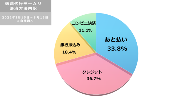 画像:退職代行モームリを依頼した方の決済方法内訳 ※2022年3月15日~8月15日(自社調べ)