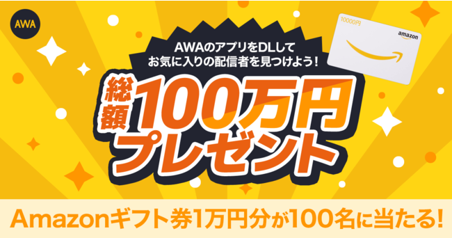 AWA株式会社(本社:東京都港区、代表取締役CEO:冨樫晃己)が運営する、サブスクリプション型(定額制)音楽ストリーミングサービス「AWA(アワ)」は、2022年9月13日(火)より、ラジオ配信ラウンジのリスナーを対象に、Amazonギフト券1万円分が100名様に当たる総額100万円のプレゼントキャンペーンを開催いたします。