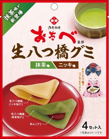 旅行気分を味わえるお菓子をコンセプトに、「京都銘菓おたべ」監修のもと再現にこだわった生八つ橋風のグミです。あんこを使用したあんこグミを、ニッキ味と抹茶味の皮をイメージしたグミに包んでお召し上がりください。