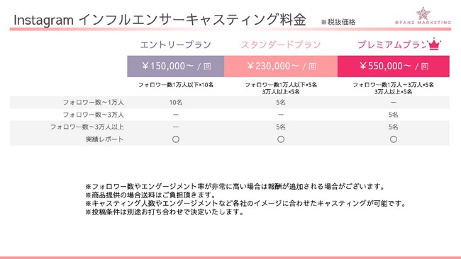 ※インフルエンサーへのギャラは別途ご負担頂きます