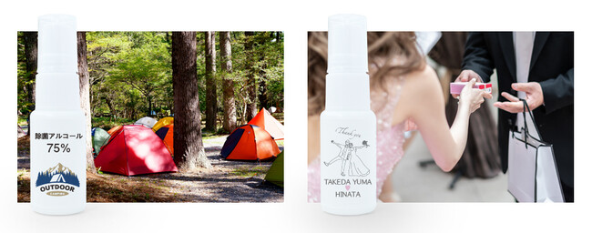 除菌アルコールスプレーは、企業や団体のノベルティや、結婚式などのイベントでの配布用におすすめしております。