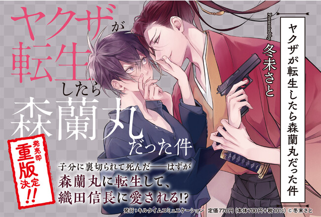 『ヤクザが転生したら森蘭丸だった件』戦国時代をテーマにした話題の転生BLが1巻3刷重版!子分に裏切られて死んだ__はずが森蘭丸に転生して、織田信長に愛される!?