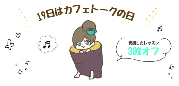 「カフェトークの日」とは、日本最大級オンライン習い事サイト「カフェトーク」が毎月19日と29日に実施している30%ポイントバックキャンペーンです。