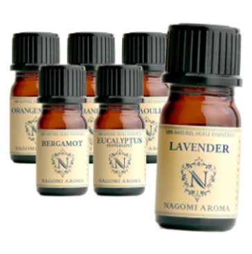 植物や果物を使用したエッセンシャルオイル。6本セットで気分や目的によって香りを選んで使用が可能。