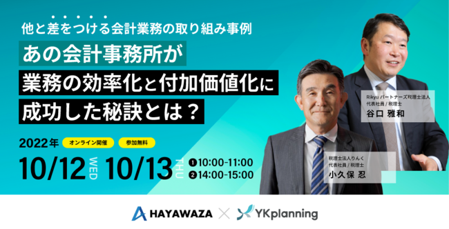 【HAYAWAZA×YKプランニング共催】「あの会計事務所が業務の効率化と付加価値化に成功した秘訣とは?」無料オンラインセミナーを開催