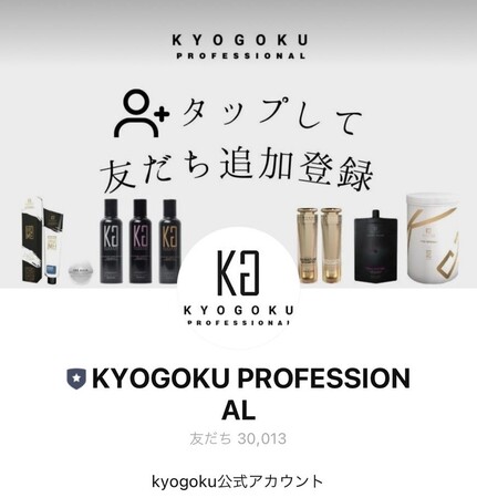 KYOGOKU公式LINEでは、お得なクーポンやキャンペーン、新商品の情報などをお伝えしています。