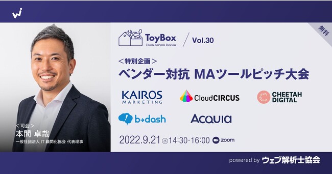 2022/9/21(水)14:30 - 16:00 ToyBox Vol.30【特別企画】【無料】ベンダー対抗 MAツールピッチ大会
