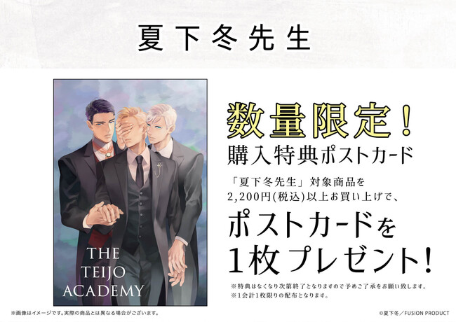 「夏下冬先生」対象商品を2,200円(税込)以上お買い上げで、ポストカードを1枚プレゼントしています。数量限定のため、なくなり次第終了です。ご購入はお早めに!