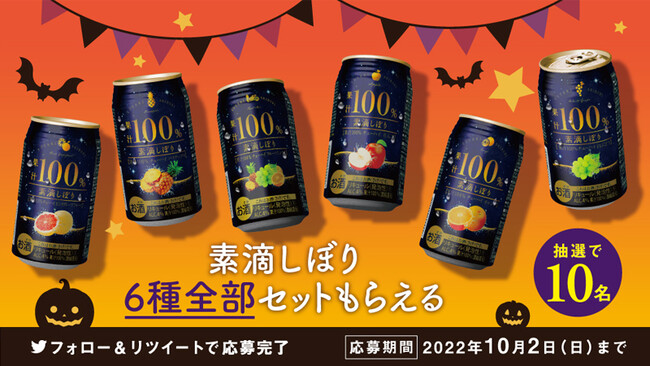 「素滴しぼり果汁100%チューハイ」公式Twitterフォロー&リツイートにて、秋の夜長に"ステキ"なひと時をお楽しみいただける「素滴しぼり6種全部セットプレゼントキャンペーン」を実施いたします。