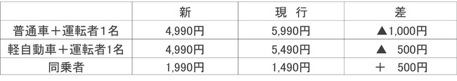 神戸~高松間の乗用車料金の値下げ、同乗者割引の廃止