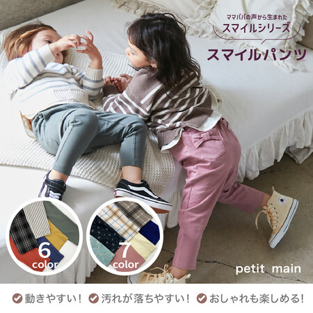ママ・パパの声から生まれた「プティマイン スマイルシリーズ」!第3弾「スマイルパンツ2種」が13色のラインナップで好評発売中!