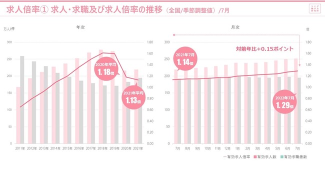 2022年7月度の有効求人倍率は1.29倍。完全失業率は2.6% 労働市場データレポート(2022年7月度版)