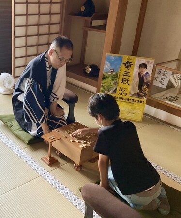 2022年7月、竜王戦の対局者のように将棋を指す写真が撮れる「将棋フォトスポット」が福知山城天守閣に誕生。プロ棋士の島本亮五段がサプライズ訪問し、来城者との対局を楽しんだ日もありました。