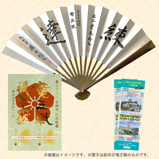 ■返礼品豪華3点セット!竜王戦記念扇子、限定御城印、お城の招待券