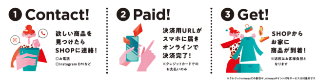 ソラリアプラザ内衣服店や雑貨店など計28店舗がサービス対象です。お客さまは電話やメール、SNS等を通じ店舗に連絡すると、店舗から決済専用URLが送られます。送付された決済専用URLからオンライン上で決済が完了し、後日店舗から商品が配送されます。コロナ禍により来店を控えるお客さまでも、オンライン上で店舗スタッフとコミュニケーションをとったうえで、店舗商品を購入することができます。