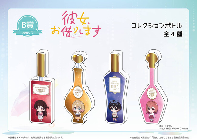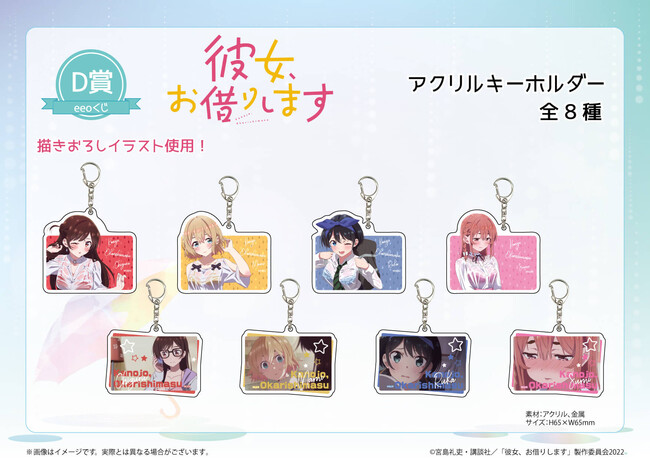 超人気TVアニメ『彼女、お借りします』のオンラインくじ『eeoくじ』が発売!景品のグッズには千鶴、麻美、瑠夏、墨のドキッとする描き下ろしイラストを使用