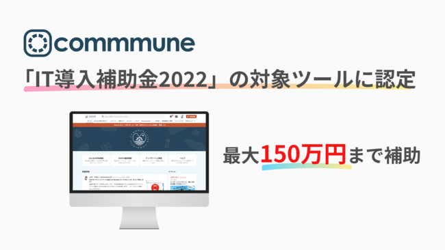 企業とユーザーが融け合うコミュニティサクセスプラットフォーム「commmune(コミューン)」と、効率的なカスタマーサクセスのためのアクション基盤「SuccessHub(サクセスハブ)」を提供するコミューン株式会社(本社:東京都品川区、代表取締役CEO:高田優哉)は、経済産業省が推進する「サービス等生産性向上IT導入支援事業(通称:IT導入補助金2022)」の対象ツールにcommmuneが認定されたことをお知らせします。これにより、commmuneをこれから導入する中小企業・小規模事業者の皆様は、1年間の利用料の2分の1以内(最大150万円)の補助金を受け取ることが可能となります。