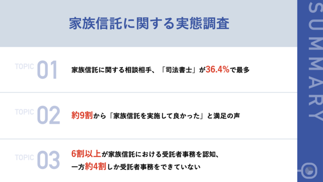 「家族信託」の利用者316名を調査、約9割が「家族信託を実施して良かった」と満足の声