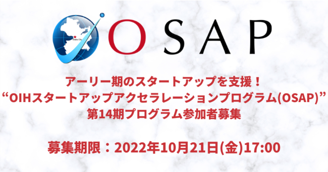 【OIHスタートアップアクセラレーションプログラム(OSAP)】第14期プログラム 募集概要