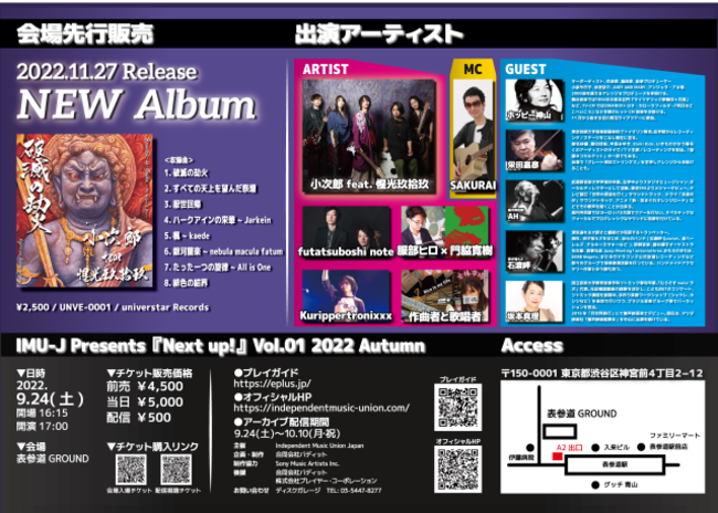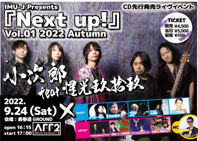 【合同会社バディットがイベントをサポート!】IMU-J Presents『Next up!』Vol.01 2022 Autumn ~ 小次郎 feat. 惺光玖拾玖 CD先行発売ライヴイベント ~