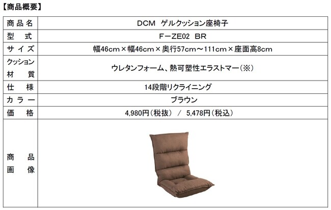 長時間座っても疲れにくい「DCM ゲルクッション座椅子 」新発売