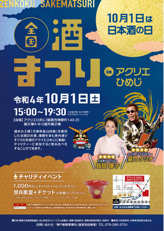 「日本酒の日」の10月1日に「全国酒まつりinアクリエひめじ」を兵庫県姫路市で開催します。