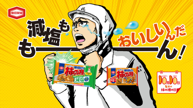 亀田製菓株式会社(本社:新潟県新潟市、代表取締役社長 COO:高木 政紀)は、発売から56年の伝統を誇る米菓売上No.1※「亀田の柿の種」の記念日である10月10日(月)「亀田の柿の種の日」を前に、2022年9月26日(月)から10月30日(日)までの間、『減塩 亀田の柿の種』を食べてみた感想をお客様に聞く「亀田の柿の種 減塩もおいしいんだもーん!」キャンペーンを実施いたします。これまでも「亀田の柿の種の日」には、「亀田の柿の種」がおやつなのか、おつまみなのかを問う「亀田の柿の種 何なの?問題」や、わさび・梅しそ味の辛さ・すっぱさを問う「亀田の柿の種 超わさび・超梅しそ全国統一品質審査」などでお客様のリアルな声をお聞きしてきましたが、今年は『減塩 亀田の柿の種』のおいしさについてお客様の正直な感想を募集いたします。