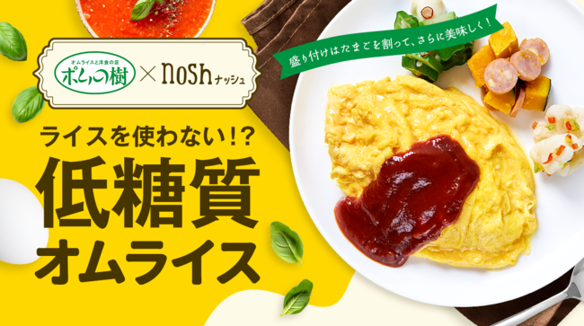 創作オムライスの専門店「ポムの樹」× nosh コラボ開発!低糖質オムライスが9月27日(火)ナッシュから新発売