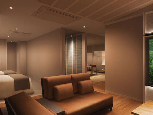 ゆったり寛げるリビングルーム、快適なベッドルーム、お部屋食可能な和室の三間構成の客室には、ワーキングスペースも併設しており、お客様の貴重なお時間を最新設備の数々を揃えた「洗練された時空間」で、有意義にお過ごしいただけると存じます。