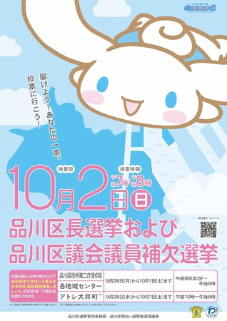また、品川区選挙管理委員会ではシナモロールの登場はないものの、これまで同様、大井町駅での啓発活動やケーブルテレビ品川でのCM放送なども実施します。