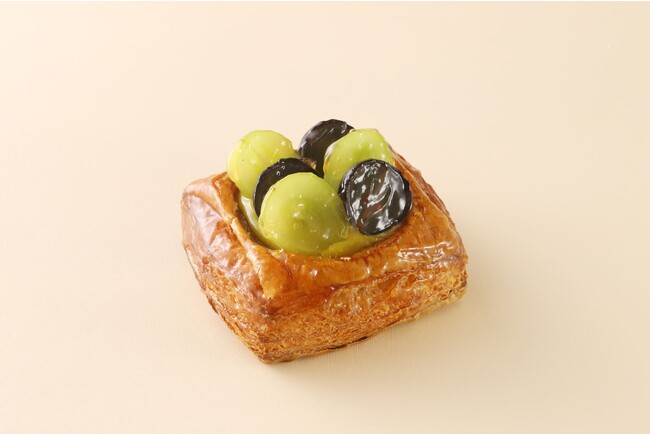 サクサクのデニッシュに濃厚なピスタチオクリームとシャインマスカット、ナガノパープルを合わせた贅沢な一品です。