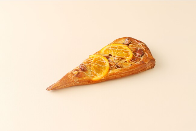 カーリーズ自慢のクロワッサン生地を巻かずに、オレンジ風味のアーモンドクリーム、ローストしたナッツとオレンジをのせ焼きあげました。キャラメルソースをトッピングして仕上げます。