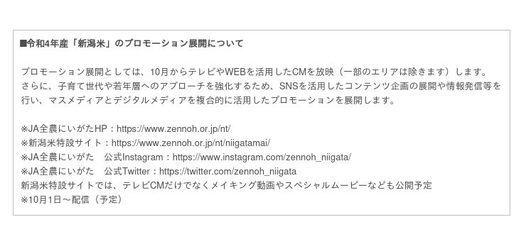 「JA全農にいがた」のプレスリリース