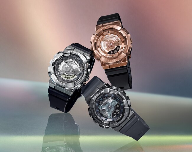 メタルの質感がそのまま楽しめるスタイリッシュなシルバーカラーの『GM-S110-1A』、ピンクゴールドIPを施し華やかさを加えた『GM-S110PG-1A』、グレーIPによるシックな表情の『GM-S110B-8A』の3モデルをラインナップ。ファッションやスタイルに合わせて着けられるクールなモデルに仕上げました。