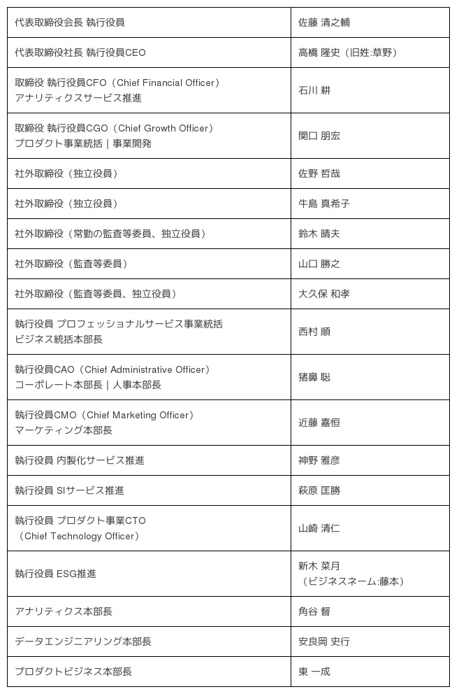 【株式会社ブレインパッド 新経営体制(2022年10月1日付)】