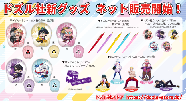 株式会社ドズル (以下、ドズル社 本社:東京都品川区、代表取締役社長:ドズル(YouTuber))は、ドズル社オフィシャルストアサイト『ドズル社ストア』にて、新しいキャラクターデザインのグッズや二次創作クリエイターの活動を支援するイラストレーターコラボグッズ第三弾の販売を開始いたしました。
