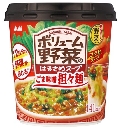 アサヒグループ食品株式会社(本社 東京、社長 川原浩)は、「野菜を食べるスープ」がコンセプトのカップスープ「おどろき野菜」ブランドから、1/2日分の野菜※1が手軽に取れる『おどろき野菜 ボリューム野菜のはるさめスープ ごま味噌担々麺』を10月11日から発売します。