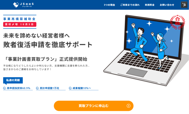 補助金申請に挑戦したものの、惜しくも「不採択」だった事業計画書を買い取り、敗者復活申請のご支援をさせていただきます。また、公開可能な事例に関しては、自分で補助金申請に挑戦する経営者さまの参考資料としてJSaaS会員企業へ公開いたします。