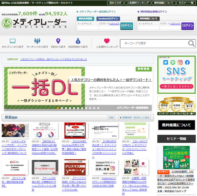 国内No.1(※1)の広告媒体資料・マーケティング資料のポータルサイト「メディアレーダー」が、「一括ダウンロード機能」の本提供を開始しました。本機能は今年5月より通常プランの掲載社を対象にβテストを行っていましたが、9月末をもってテストを終了しました。