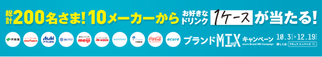 『ブランドMIXキャンペーン第2弾』~メーカー10社のドリンク1ケースが200名さまに当たる!~