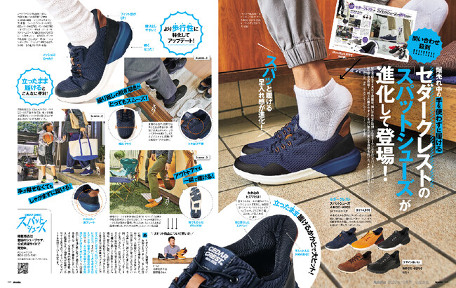 立ったまま、スパっと履ける大好評のセダークレスト「スパットシューズ」がさらに進化して登場!モノ・トレンド雑誌「MonoMax」にも紹介中。