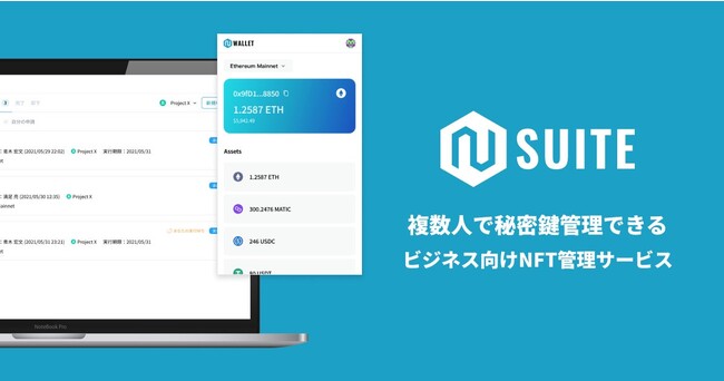 N Suiteは、複数人で秘密鍵管理できるビジネス向けNFT管理サービスです。NFT発行や暗号資産の送金、スマートコントラクトのデプロイなど、NFT/Web3領域の事業をスムーズかつ効果的に行うための製品を揃えております。組織の秘密鍵管理の課題を解決することで、組織がWeb3の基盤となるブロックチェーンにアクセスするハードルを下げ、Web3の発展を加速させることを目指しています。