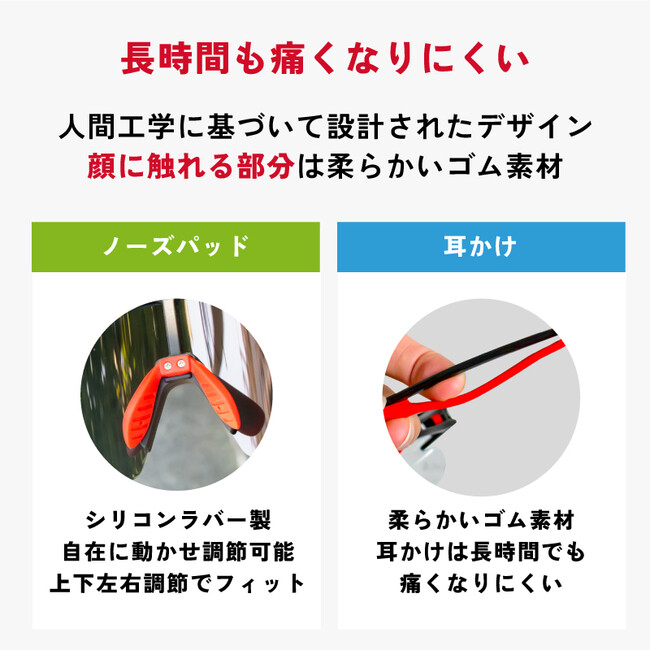 仕様 UV400紫外線カット、調整可能の鼻当て