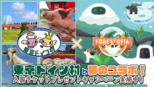 のんびり気ままな島ぐらしシミュレーションゲーム「フォレストピア」東京ドイツ村との夢のコラボキャンペーン開催!リアルでもゲームでもかわいい動物たちと触れ合おう♪