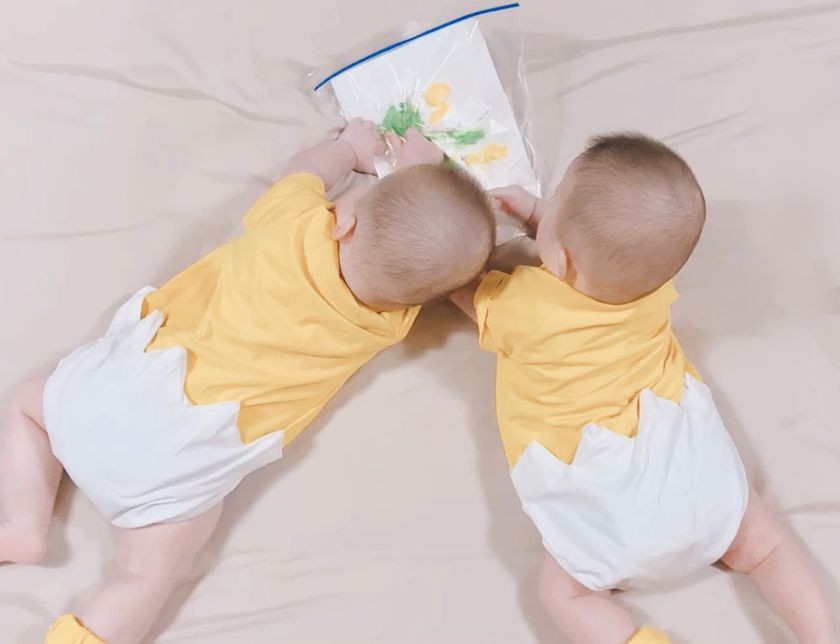 ジップロックに絵の具のついた紙を入れ、上から手足を使って色を散らしていく技法で作画しています。その作品達をデジタル化いたしました。「0歳双子の合作」という他にない制作方法も特徴の一つです。純粋無垢な心が作り出す美しい世界をお楽しみください。