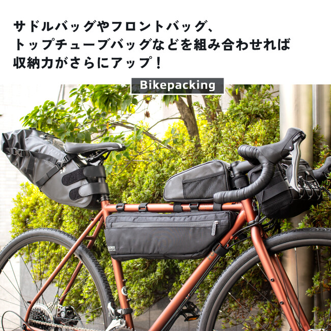 サドルバッグやフロントバッグ、トップチューブバッグなどを組み合わせれば